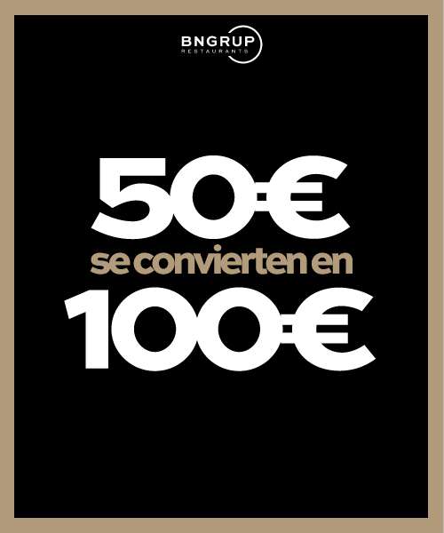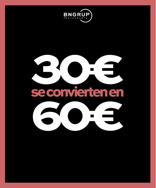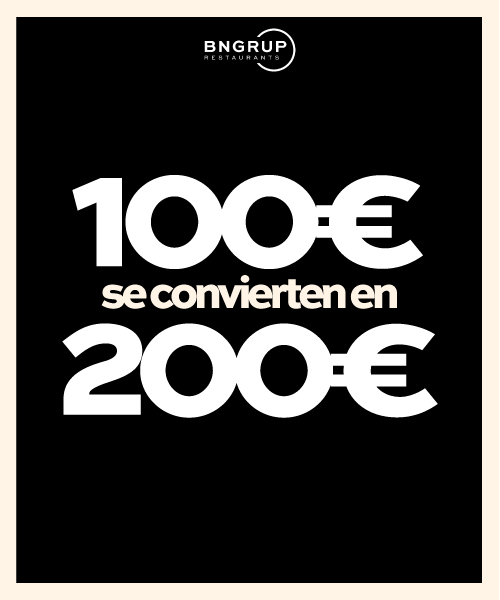Compra hoy un bono de 30 €, 50 € o 100 € y disfrútalo como si fueran 60 €, 100 € o 200 € en cualquiera de nuestros locales BNGRUP.
